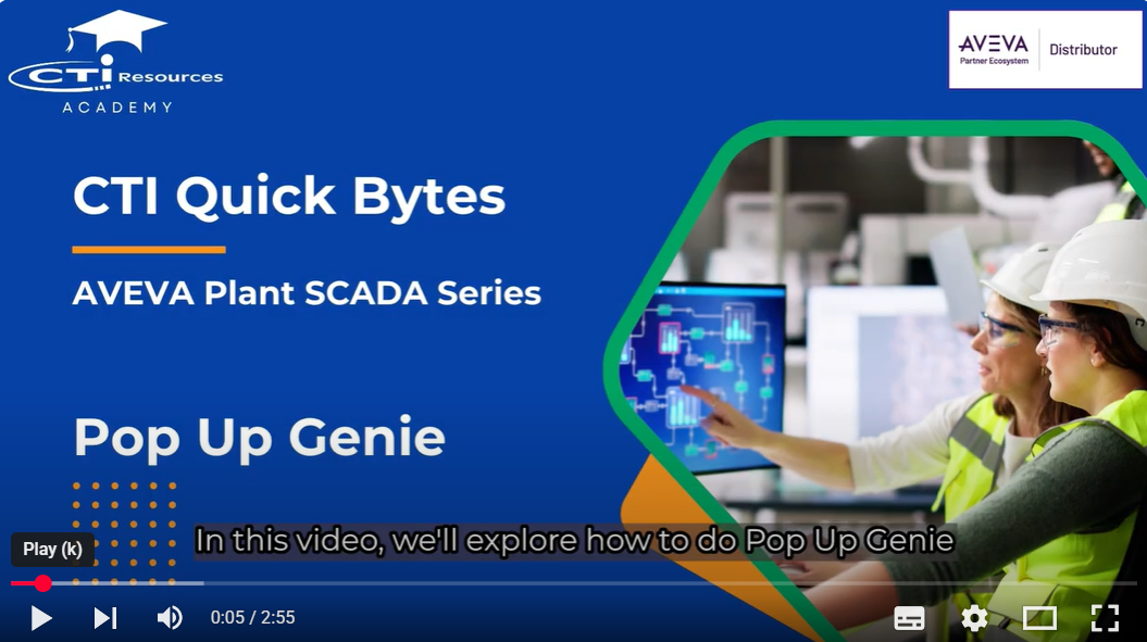 Learn how to use the Pop Up Genie feature in AVEVA Plant SCADA. This step-by-step micro-tutorial shows how to trigger contextual pop-ups (faceplates, setpoints, trends, and alarms) so operators can act fast without leaving the main process screen.