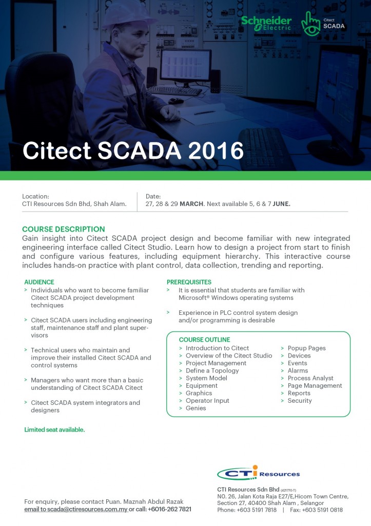 Come and join our Citect SCADA 2016, 3 days training!